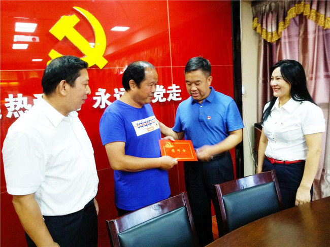 6月29日下午,贛州市工商聯調研員夏命通一行,代表市非公經濟組織黨委來到燕興物業走訪,帶來了黨的溫暖和關懷,給因父親生病過世的困難黨員謝良平送上了1000元的慰問金。