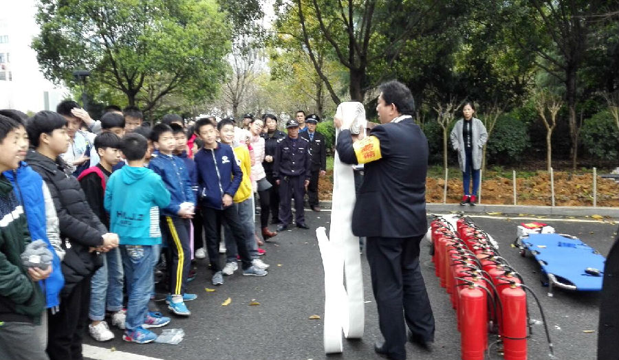一培訓完,參加演練的全體人員整裝列隊,在演練總指揮的一聲令下,演練正式開始。這次演練的主要內容為通訊報警、警戒保障、疏散救護和行動滅火。現場模擬體育中心某處冒出滾滾濃煙,物業公司接到火警報告后,立即啟動火災應急處置預案,通訊聯絡組、疏散警戒組、滅火行動組、后勤救護組按照預案立刻展開行動。通訊聯絡組立即撥打119、120救援電話;疏散警戒組立刻對各路口進行警戒封鎖,組織被困人員沿著設定的逃生路線有序撤出大樓;滅火行動組第一時間帶著消防水帶、滅火器等消防器材趕到火災地點,將大火有效控制直至撲滅;后勤救護組對在火災現場受傷的人員進行救護,傷情較重的用擔架抬出至安全地帶進行救治……各個環節臨危不亂,環環相扣,操作嚴謹。