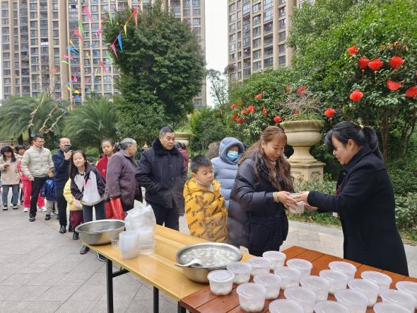 吃一碗元宵,盼一年團(tuán)圓。元宵節(jié)吃湯圓,包含著思念親人、渴望團(tuán)圓的寓意,也寄托對(duì)未來生活的美好愿望。盛合.公園壹號(hào)小區(qū)、帝景豪園小區(qū)、怡景嘉苑小區(qū)開展了送湯圓活動(dòng),物業(yè)工作人員一早準(zhǔn)備了熱氣騰騰的湯圓,為業(yè)主家人們送上甜甜的祝福。將濃濃的祝福裹進(jìn)餡兒里,包進(jìn)湯圓里,送到手里,溫暖到心里。