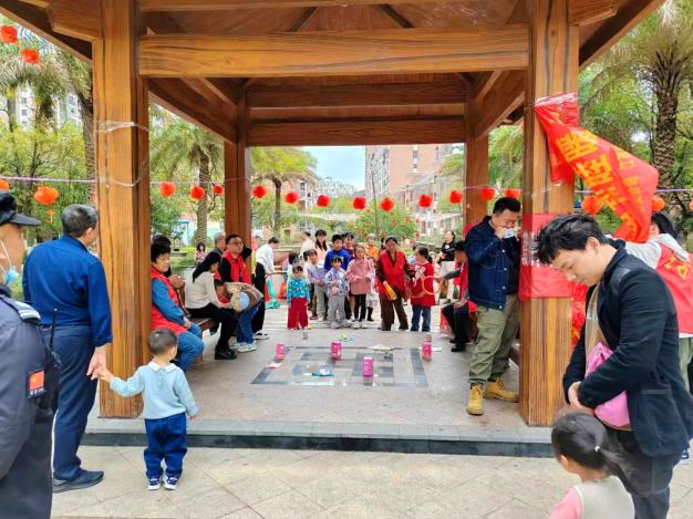 贛州嘉福國際小區(qū)聯(lián)合泥灣里社區(qū)開展“歡歡喜喜鬧元宵 鄰里和睦暖心田”猜燈謎游園活動(dòng),一排排懸掛的彩色燈謎條渲染出喜慶的節(jié)日氛圍,妙趣橫生的燈謎吸引眾多業(yè)主前來參與,有趣的小游戲吸引孩子們駐足游玩。只見業(yè)主們帶著孩子,穿梭在懸掛的燈籠中,看謎面、猜謎語、玩游戲,現(xiàn)場(chǎng)一片歡聲笑語,共同度過其樂融融的歡樂時(shí)光。