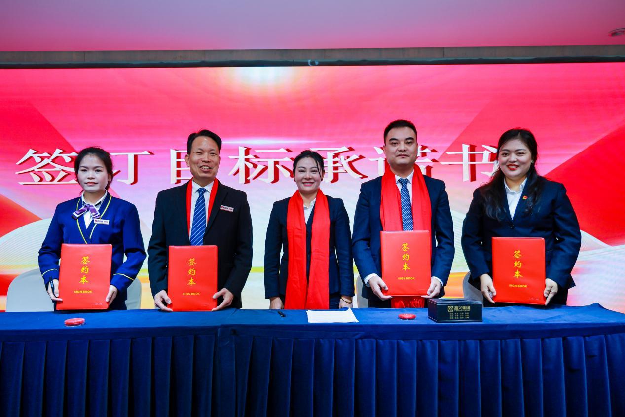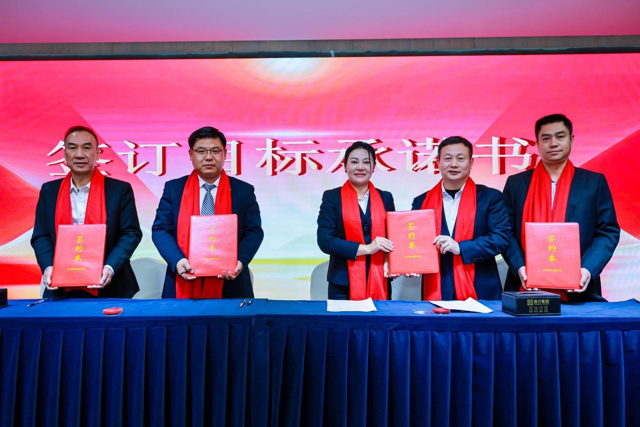 會上,集團董事長劉燕與集團市場拓展部、各子公司、分公司簽訂2025年經營目標承諾書。承諾書的簽訂,既是完成各項經營目標的軍令狀,也是自我加壓、攀登超越的奮進宣言,詮釋著一份責任、一種擔當。集團各部門、子公司、分公司將聚焦經營,將考核目標轉化為行動計劃,逐級分解,有力有序、保質保量完成全年各項工作任務。