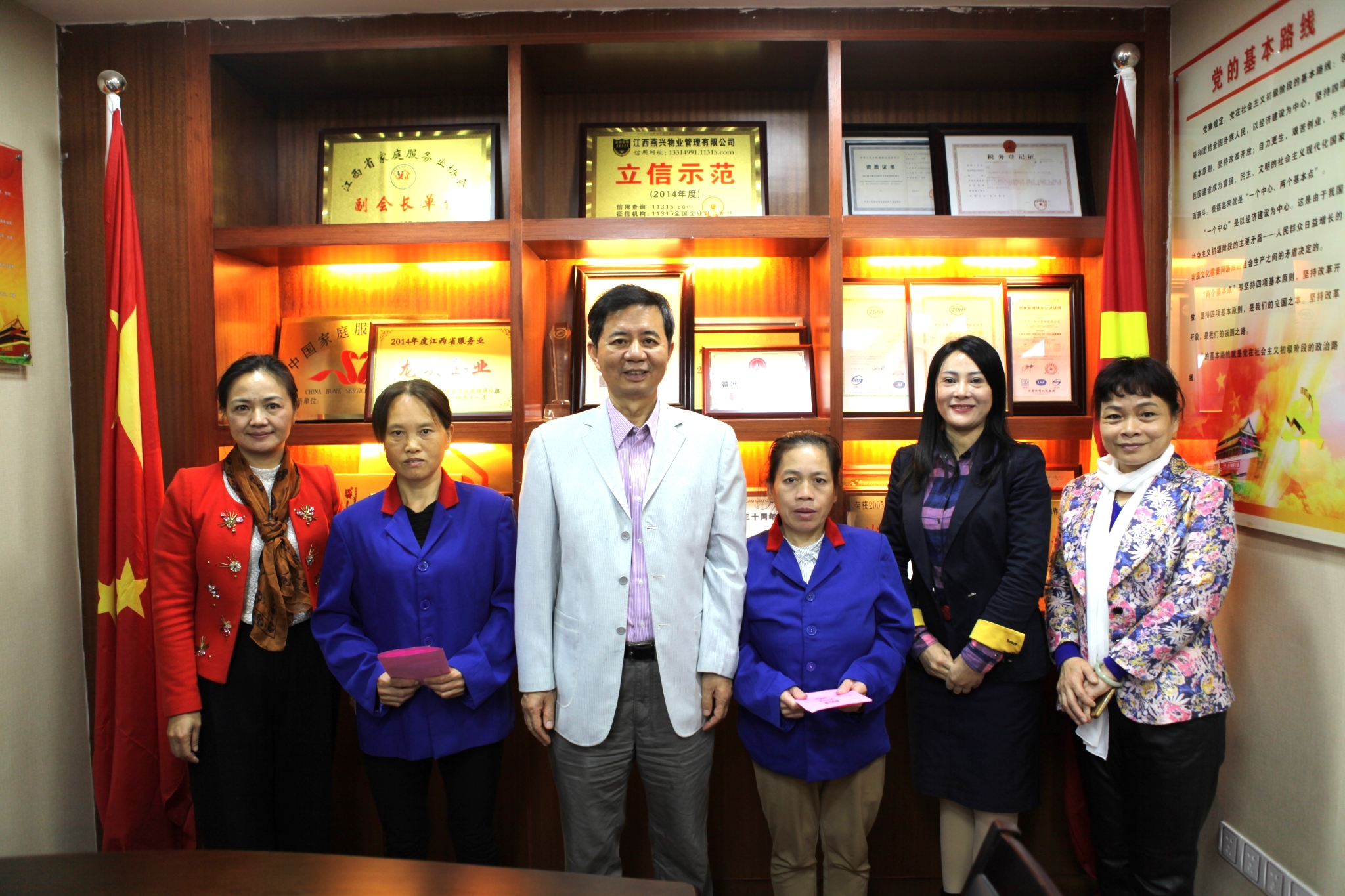 人大領(lǐng)導(dǎo)與劉燕代表合影 12月6日下午,贛州市章貢區(qū)人大常委會主任劉銘忠、市人大常委會選任聯(lián)主任賴景春領(lǐng)導(dǎo)一行到贛州市商會大廈走訪了江西燕興物業(yè)管理有... 2016-12-07